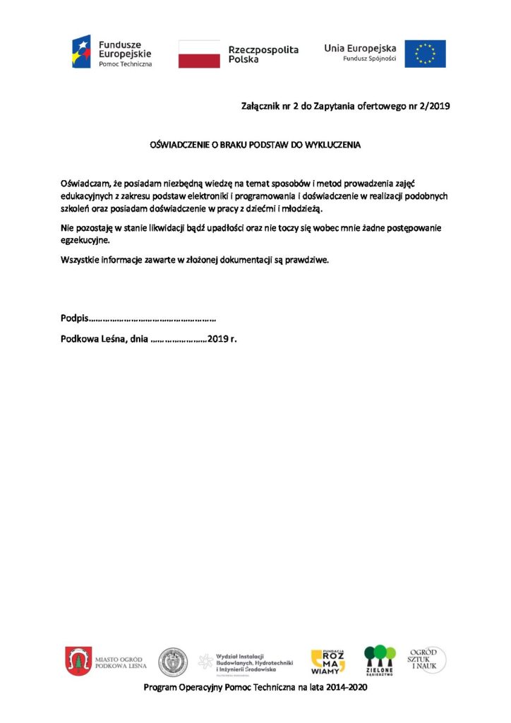 Zapytanie ofertowe nr 2/2019
